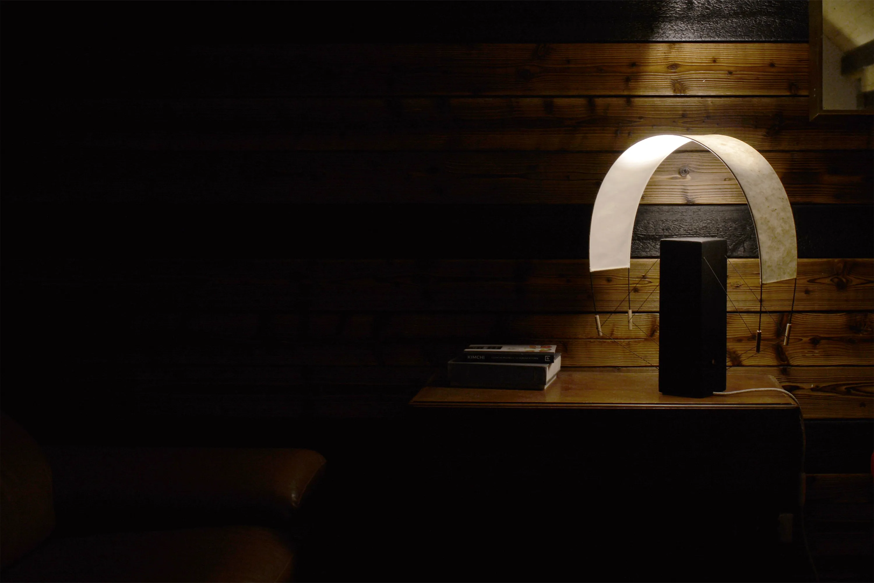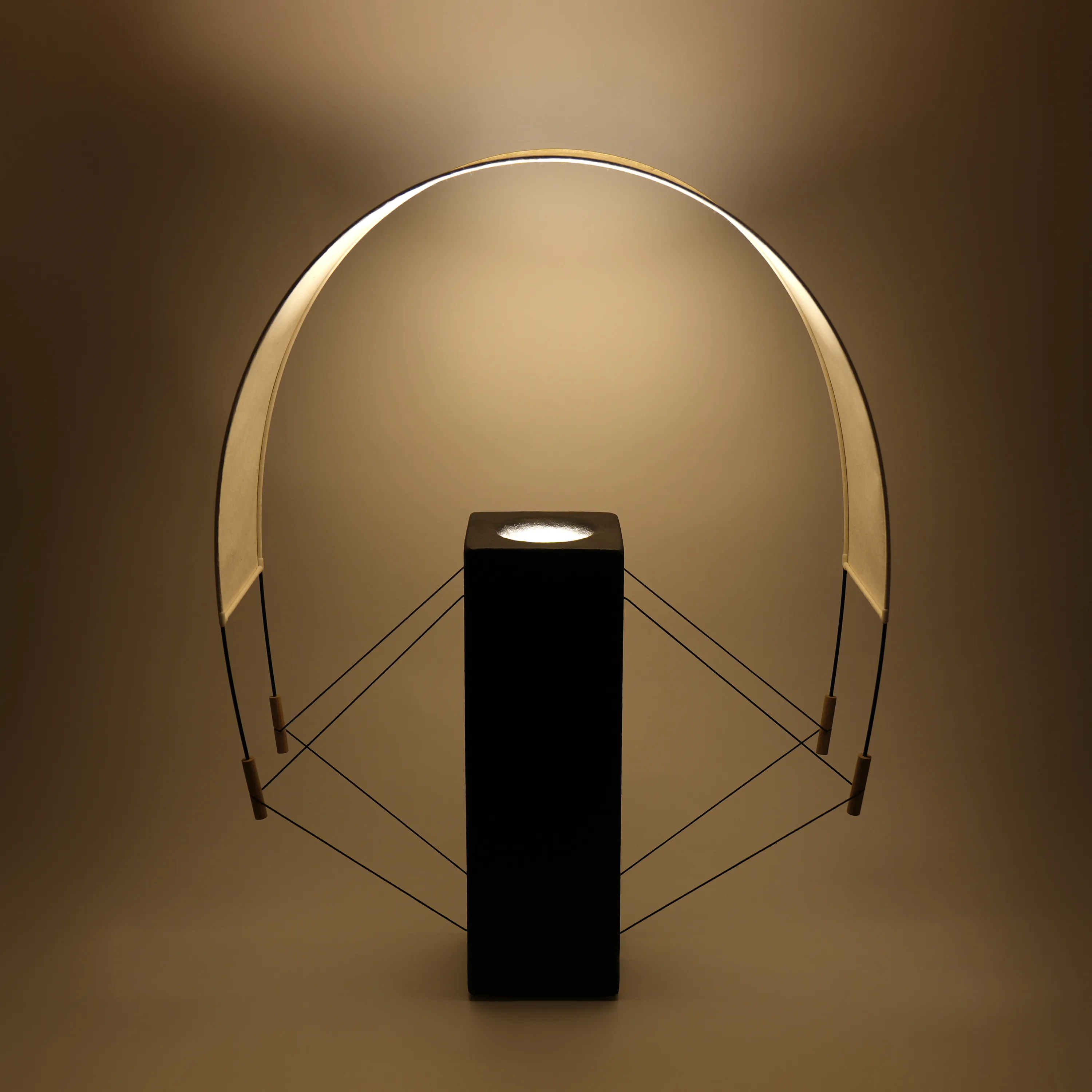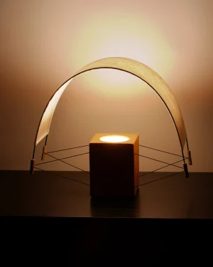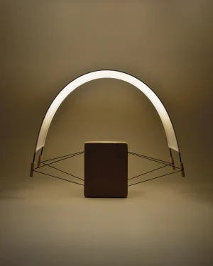 Inspired by the luminous beauty of the Mediterranean, Lumia reveals its dual nature: a sculptural monolith by day, a luminous arch by night. Its warm, diffused glow—like the last rays of a sunset—transforms any space into a soft and evocative atmosphere.