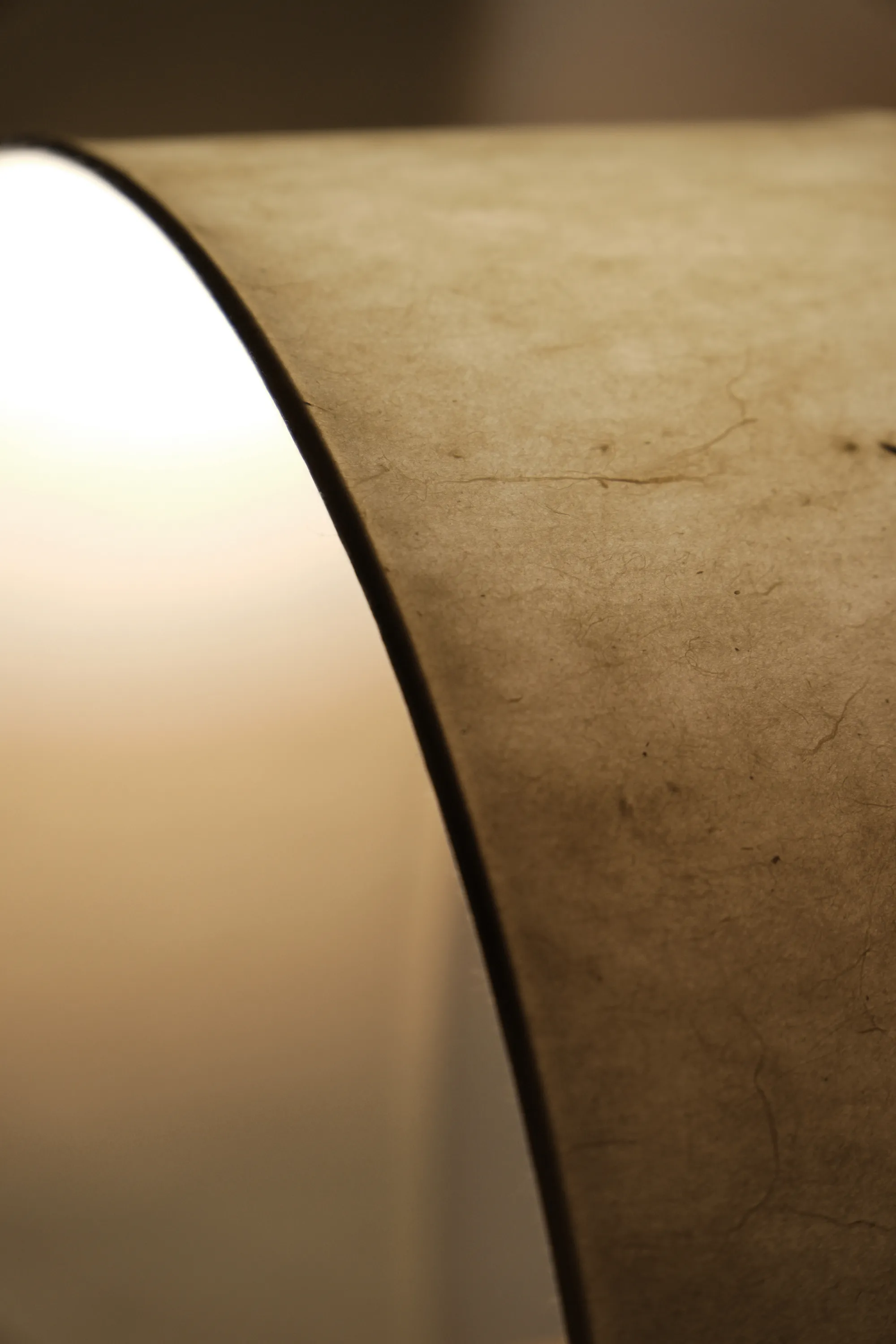 → Hand-rolled Japanese paper lampshade: adjustable to suit your mood.