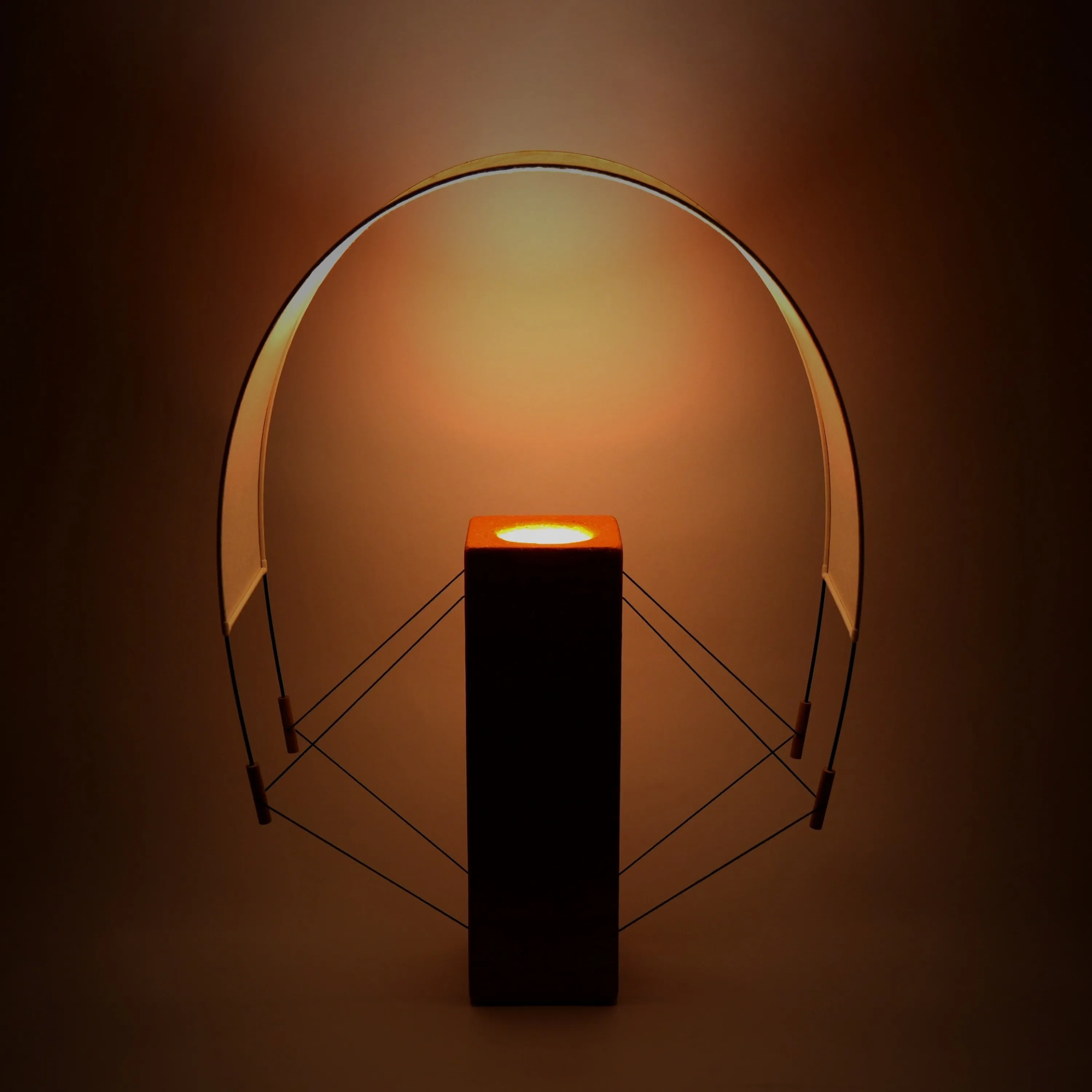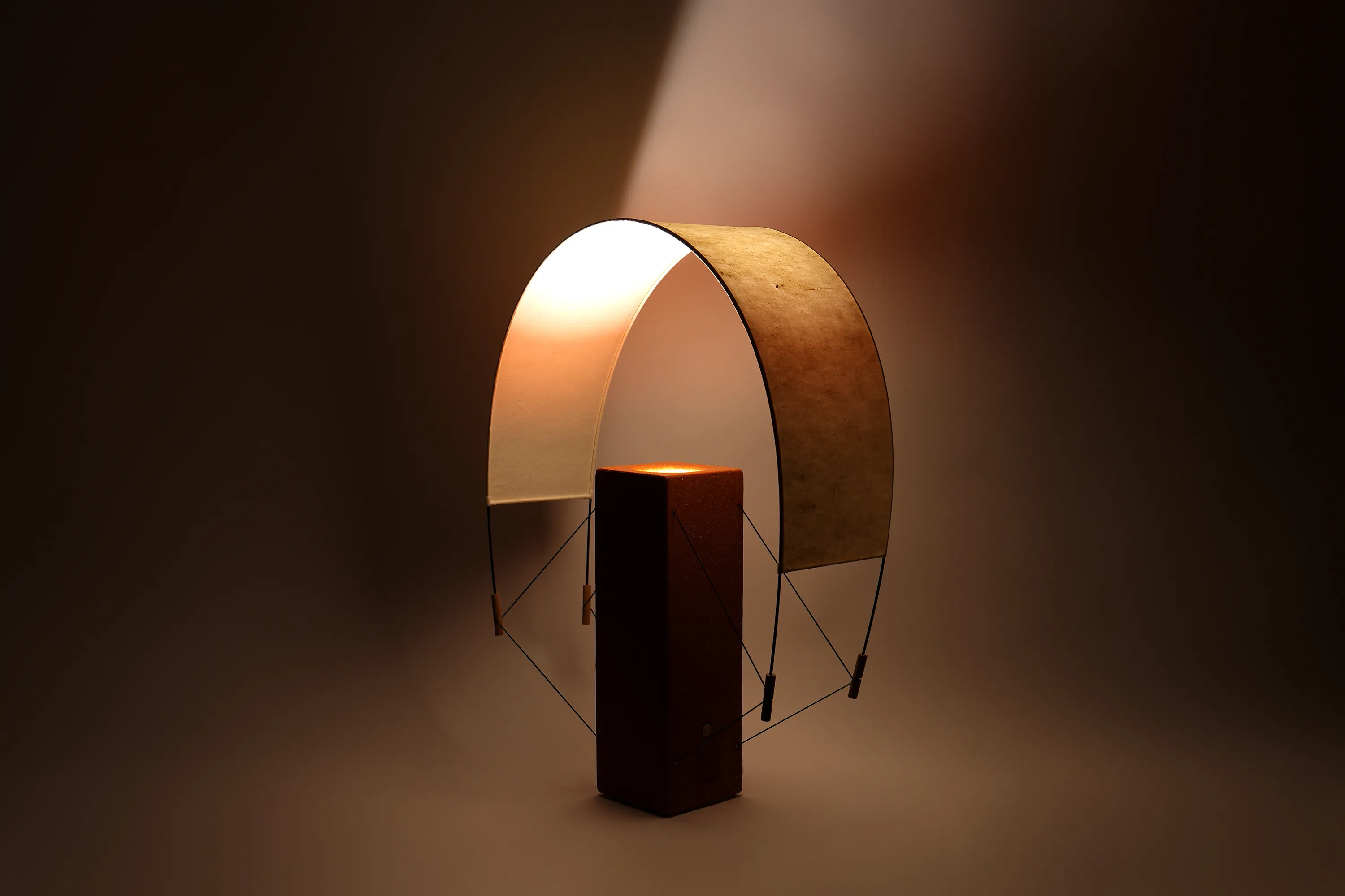 Inspired by the luminous beauty of the Mediterranean, Lumia reveals its dual nature: a sculptural monolith by day, a radiant halo by night. Its warm, diffused glow—like the last rays of a sunset—transforms any space into a soft and evocative atmosphere.