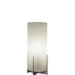 The most striking part of the design is the interlocking base consisting of two laser-cut stainless-steel legs with a hand-polished finish by master craftsmen. This gives the lamp a stable and solid base, with an elegant look. The lampshade is made of a polycarbonate cylinder, a 100% recyclable material, which projects a beautiful light when the lamp is on.