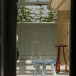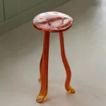 A Martini Table that embodies the contradiction between fragility and strength. Its organic form conveys lightness while its resin construction ensures durability and effortless portability. When sunlight touches its surface, the table reflects shimmering gleams that evoke a dreamlike, natural atmosphere, as if the piece itself were breathing life into the space. **This piece can be created in various colors and customized together with Szymon**
