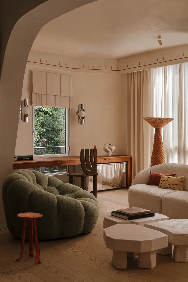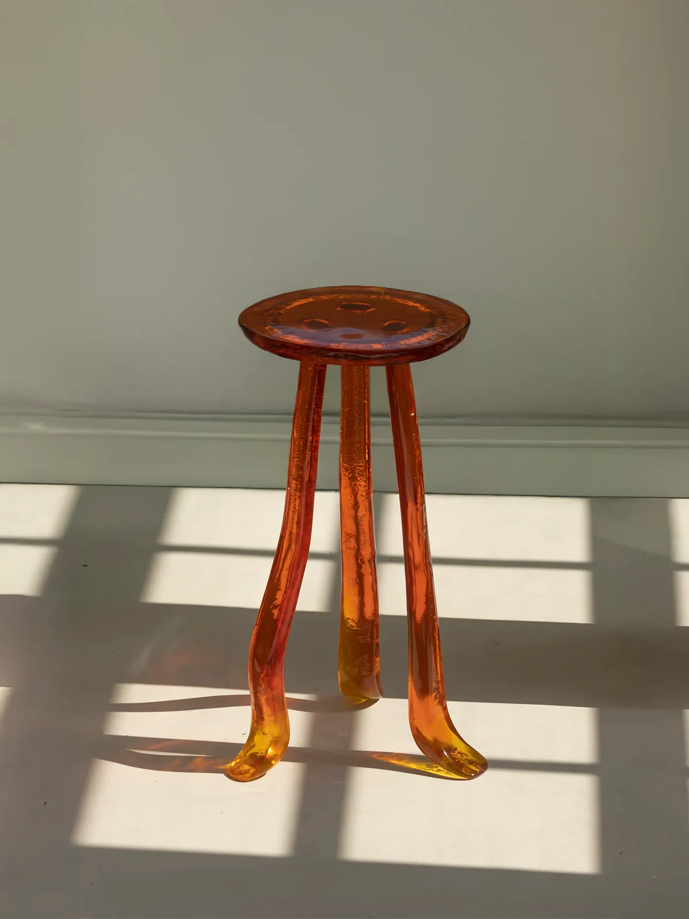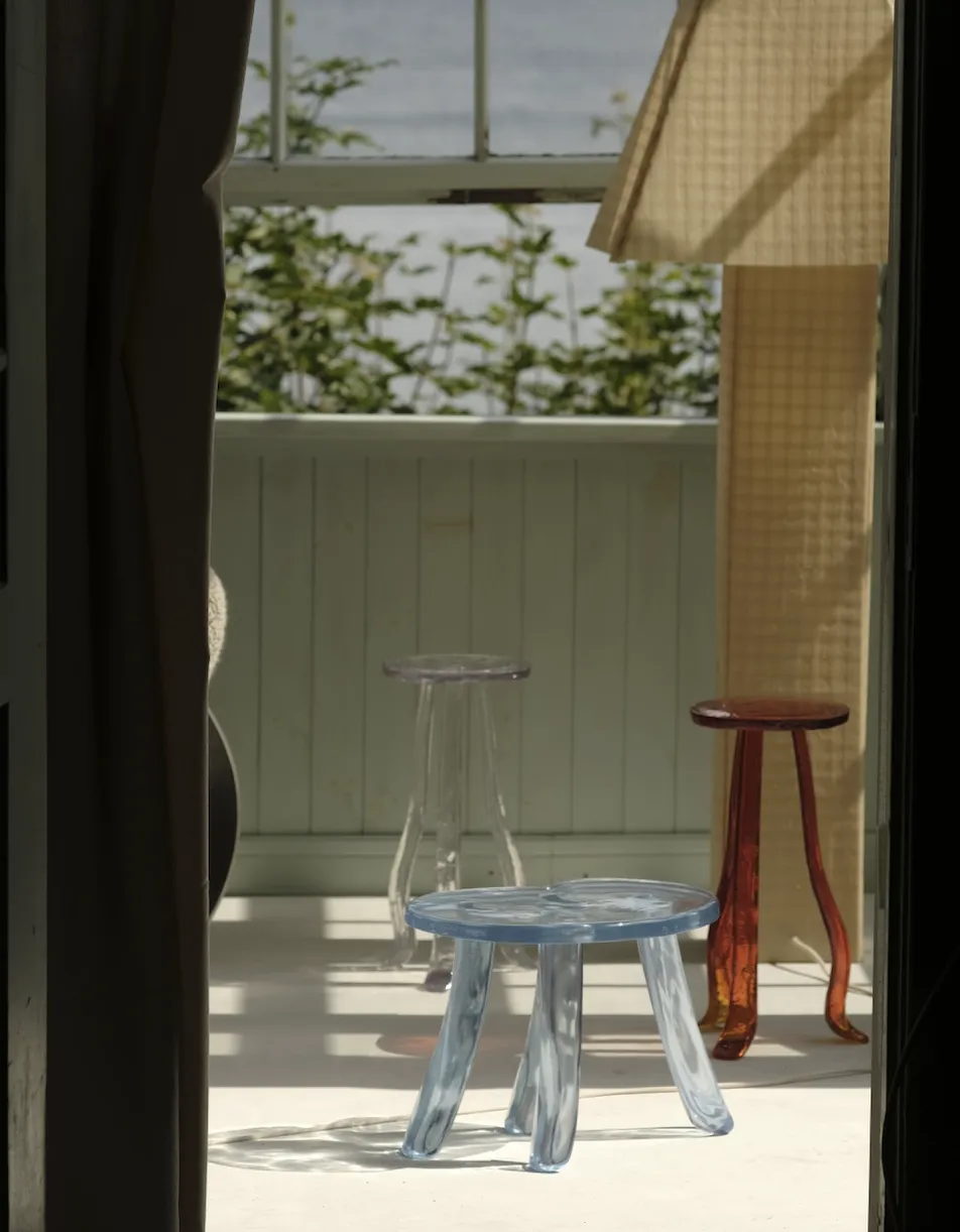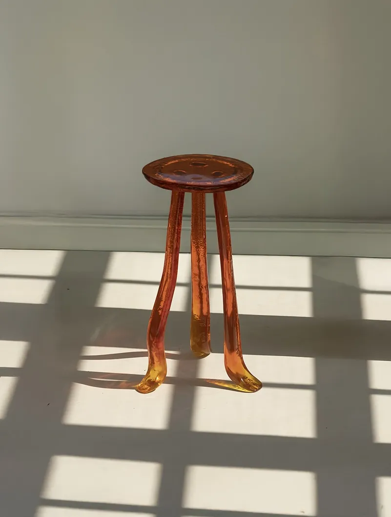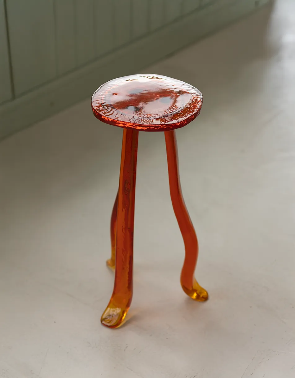 A Martini Table that embodies the contradiction between fragility and strength. Its organic form conveys lightness while its resin construction ensures durability and effortless portability. When sunlight touches its surface, the table reflects shimmering gleams that evoke a dreamlike, natural atmosphere, as if the piece itself were breathing life into the space. **This piece can be created in various colors and customized together with Szymon**