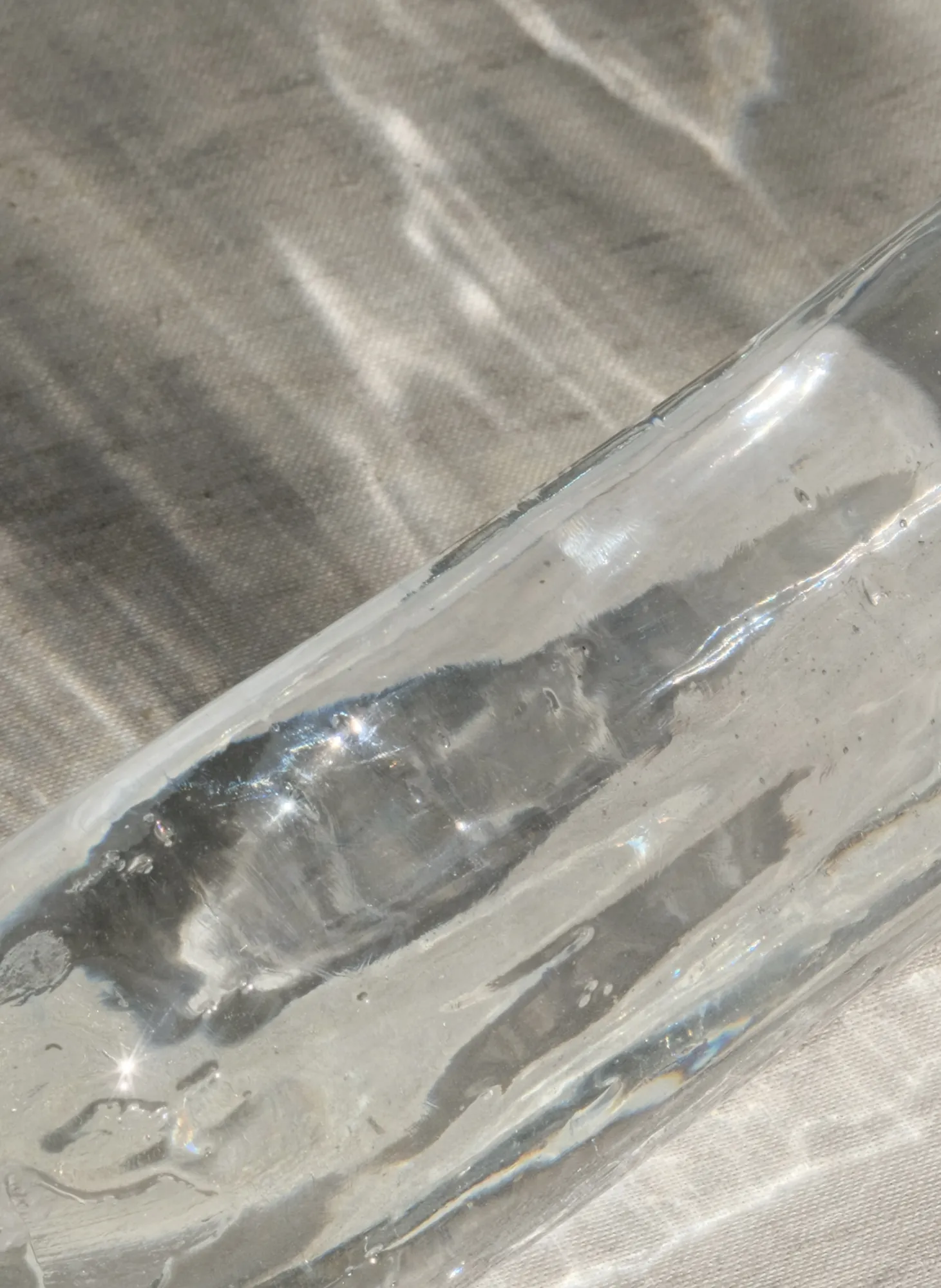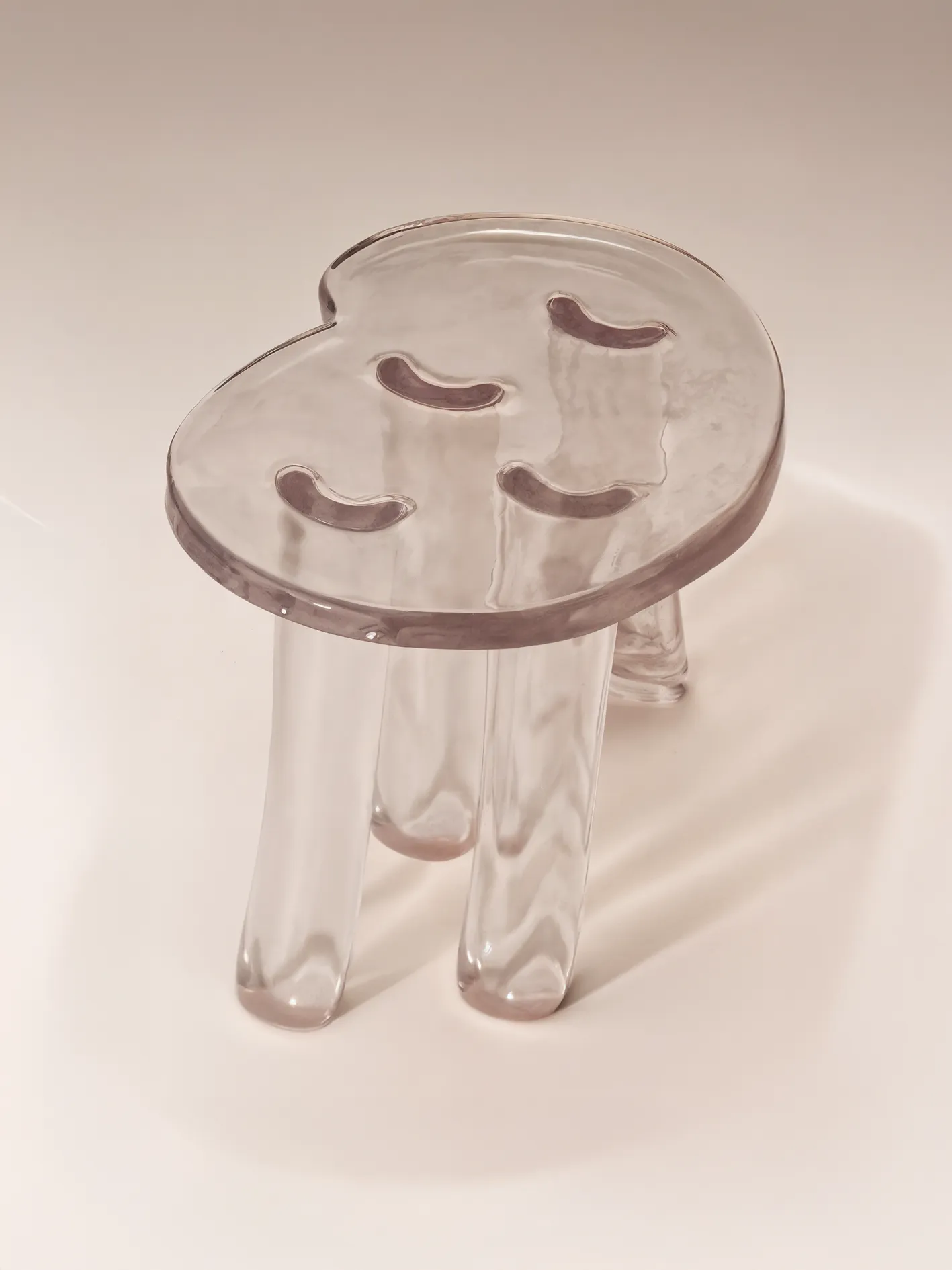 Transparent resin piece, resembling amber, shaped with heat and natural deformations, inspired by the sea and the sun.