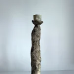 Roughly hewn yet deeply intentional, this sculptural candlestick by Meagan Cignoli Studio embodies an organic dialogue between raw texture and refined form. The surface, pitted and weathered, evokes the passage of time; reminiscent of eroded stone, ancient artifacts, or sedimentary formations shaped by the elements. The piece stands tall with a quiet yet powerful presence, its irregular silhouette hinting at the forces of nature and hand at play.