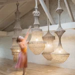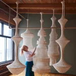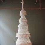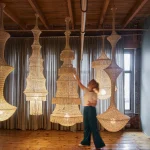 Every gesture in her process is intentional and repetitive, embodying a celebration of imperfection, transience, and the traces left by the maker’s hand. Her sculptural lighting pieces carry this quiet energy, offering warmth, material richness, and emotional presence.