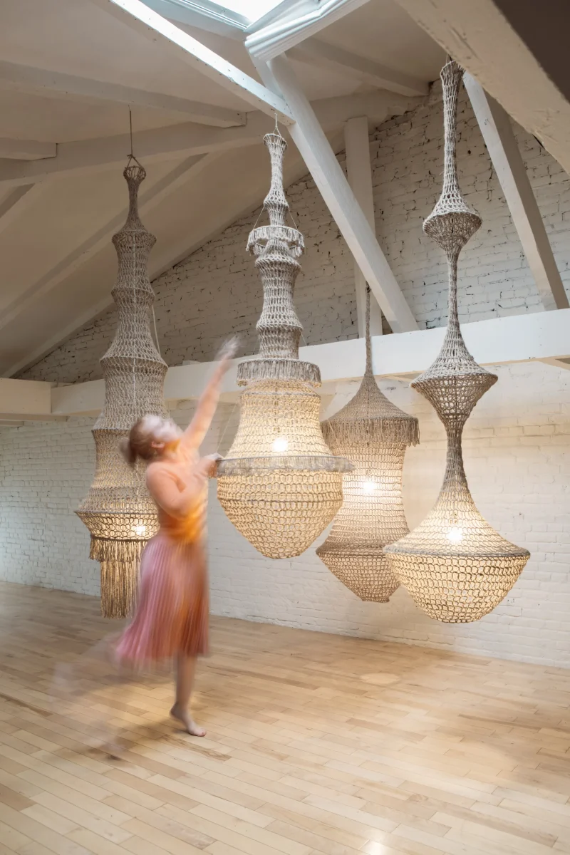 Every gesture in her process is intentional and repetitive, embodying a celebration of imperfection, transience, and the traces left by the maker’s hand. Her sculptural lighting pieces carry this quiet energy, offering warmth, material richness, and emotional presence.