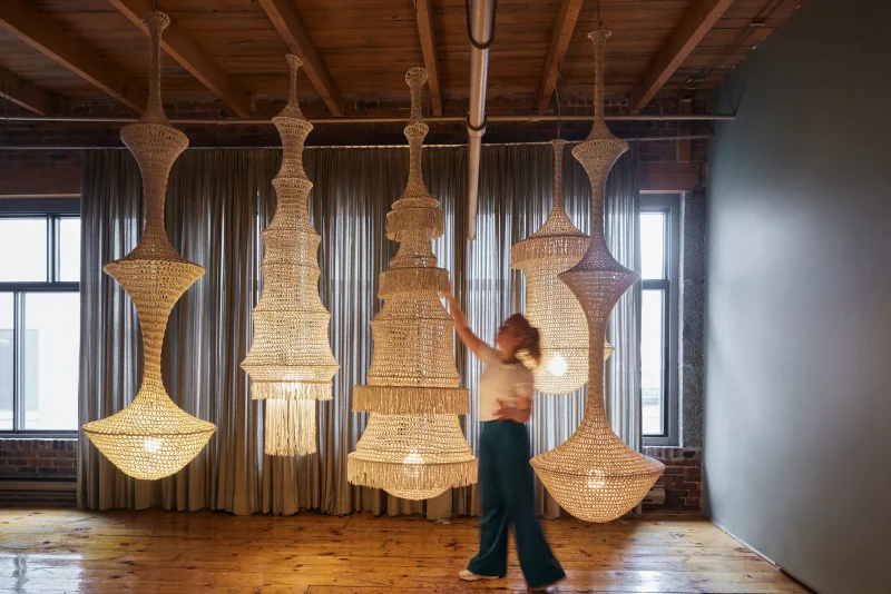 Annie Legault’s work through AMULETTE includes one-of-a-kind pieces for interior designers, retailers, private collectors, and cultural institutions. Her sculptural lighting invites connection — with nature, with space, and with the quiet resilience of the handmade.