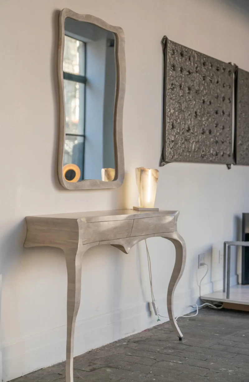 In his capacity as a designer Aaron Scott recently become interested in objects made during the period of Louis XV. Furniture of this era made a clean break from the imposing and rigid designs of Louis XIV by placing emphasis instead on lightness, comfort and sensuality – and thus bringing the body into a more intimate relationship with the furniture object. In his own work Scott has used strategies like rotational-symmetry, non-Euclidean geometry and complex curvature to draw the spectator’s body into the object’s geomorphic logic, and certain motifs present in the furniture of the Louis XV period already find some degree of expression in his work; the LXV series represents a further exploration of these formal and conceptual relationships.