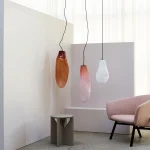 ELOA’s amorphous shaped LYRA gracefully floats in space. Its form emerges in an endless variety of poetic shapes depending on its orientation within your gaze. The elegant appearance follows the star constellation lyra. LYRA’s extruded form opens up space for a wide spectrum of colors. The smooth color transition in Yellow – Green – Blue creates a very calming moment. The bright color notes Flamingo, Coral and White Opaque provide fresh and radiant accents of color.