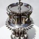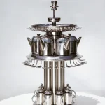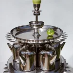There are teapots and teaspoons, saucers and mugs, thermoses, and, of course, a tray on top to complete the composition. This tea-inspired madness is built in the proportions of a classical column and reminds us of the beloved scene from Alice in Wonderland – the Mad Tea Party.