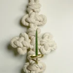 A candle sconce by WKND Lab constructed with cotton rope, viscose casing, and brass. The brass