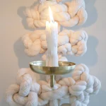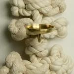 A candle sconce by WKND Lab constructed with cotton rope, viscose casing, and brass. The brass part is made by a metal turning master who worked as a technician for more than 45 years. The rope is developed especially for the piece by WKND Lab. The meaning behind it follows the same as the **Guidorae** and **Samjeongja** knot-making methods. Traditionally, the **Guidorae** symbolizes harmony and continuity, while the **Samjeongja** represents balance, strength, and stability. Together, these knots convey blessings of protection, connectedness, and well-being.