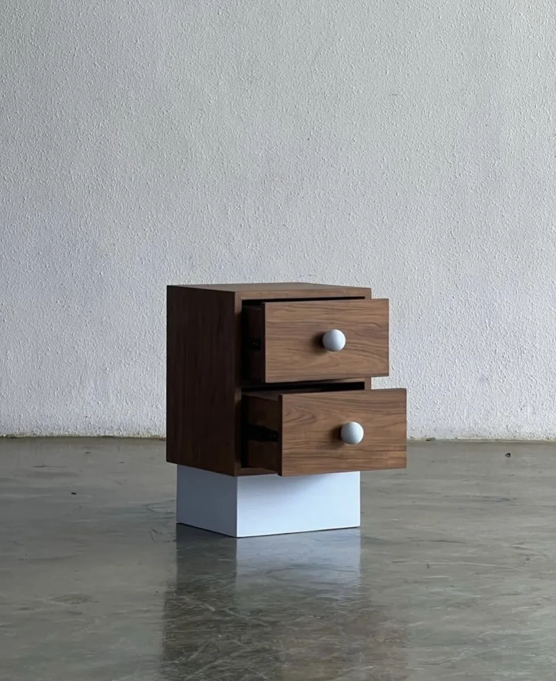 Autumnal Design Bedroom Collectible Contemporary Minimalism Minimalist modernist October Sky Playful Playful design Reading Room Side table Teak The New Bauhaus Warm wood Woman Made Wooden Wooden sidetable