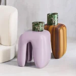 Small accent table/stool, handmade from natural materials including stone, ceramic and solid wood.