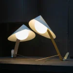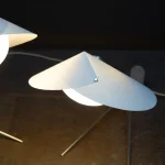 Inspired by the graceful yet formidable mantis insect, the MANTIS collection by Riya Panchal of MESEME Studio marries organic elegance with contemporary design. The lamp’s gentle sway when touched adds a touch of whimsy, echoing the stealthy movements. Crafted using making techniques as their previous CONCHA Pendant Light Collection, the MANTIS collection is an evolving collection of table, floor and wall lamps. Available in two different metal finishes – brushed brass and brushed aluminium and choice of specialist paper colour-ways, it invites us to embrace the forms of nature and its simplicity.