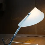 Poised, delicate and playful – the MANTIS Table Lamp is handcrafted at our North London-based workshop. The fixture boasts a unique paper type that blends paper and non-woven fabric. Visible on the surface are the very fibres that give this paper its distinctive character. Striking both visually and texturally, it also offers surprising versatility. When held to the light, the paper takes on a warm sheen. The paper shade, reminiscent of a mantis’s extended forelimbs, and the slender, curved arm, echoing the insect’s elongated body, create a harmonious and visually appealing silhouette when combined with the ellipsoid light source.