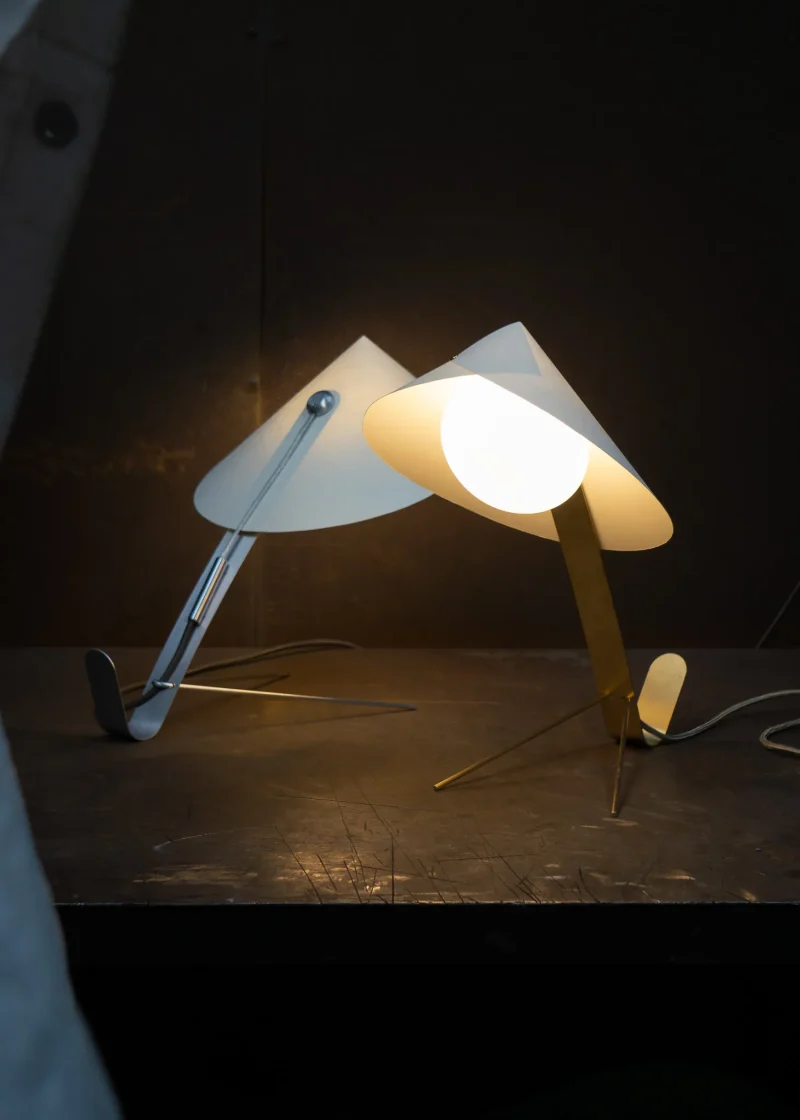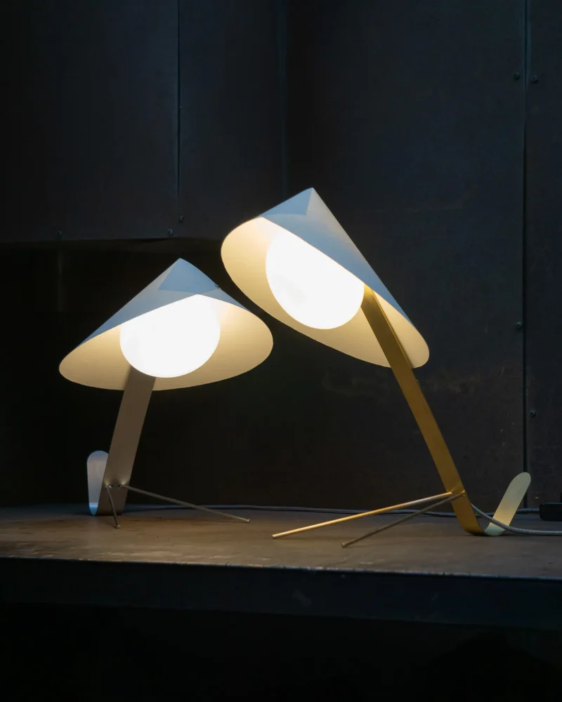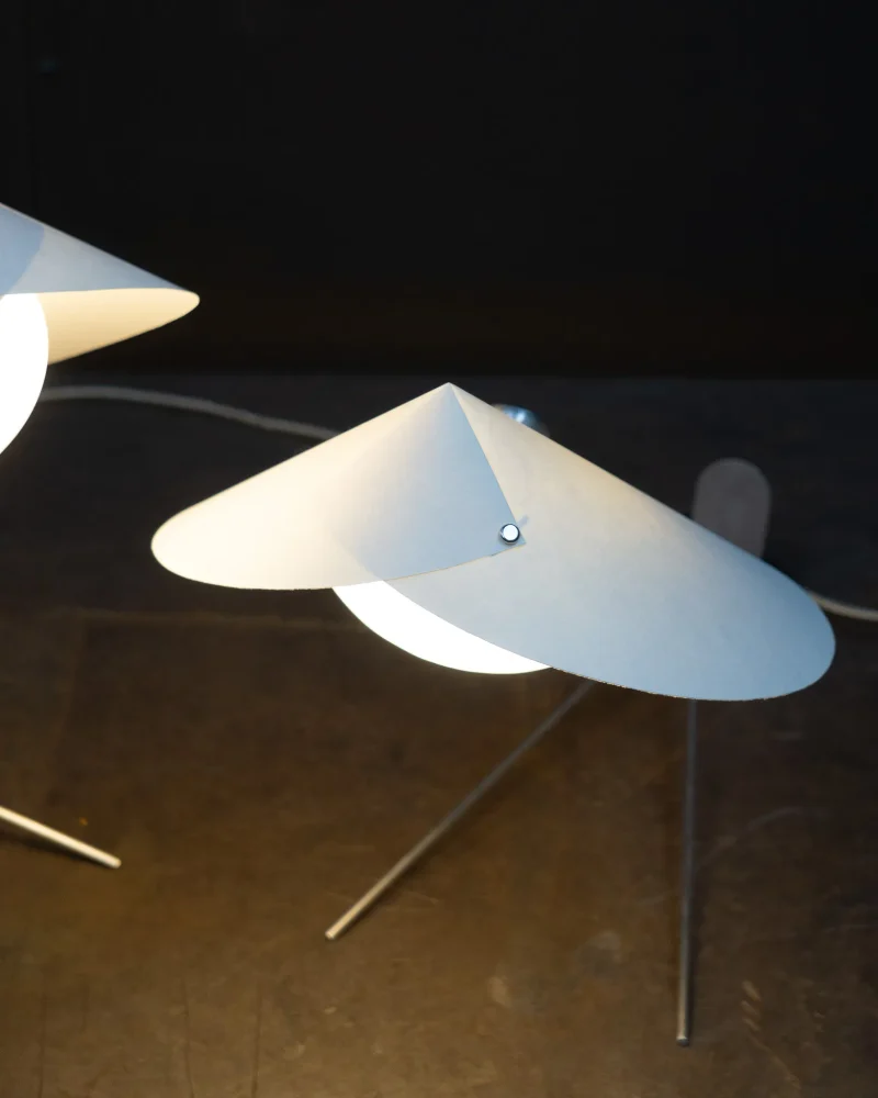 Inspired by the graceful yet formidable mantis insect, the MANTIS collection by Riya Panchal of MESEME Studio marries organic elegance with contemporary design. The lamp’s gentle sway when touched adds a touch of whimsy, echoing the stealthy movements. Crafted using making techniques as their previous CONCHA Pendant Light Collection, the MANTIS collection is an evolving collection of table, floor and wall lamps. Available in two different metal finishes – brushed brass and brushed aluminium and choice of specialist paper colour-ways, it invites us to embrace the forms of nature and its simplicity.