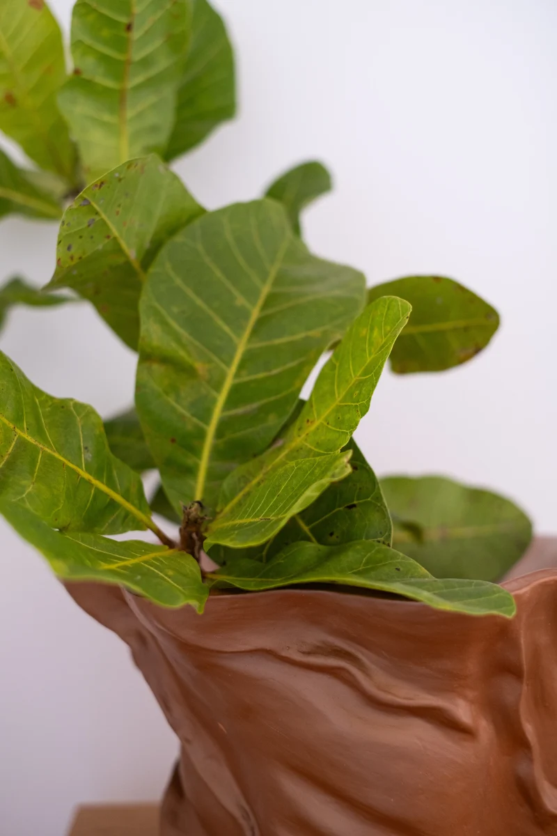 The ceramics of the Jequitinhonha Valley are considered an intangible heritage of the state of Minas Gerais, in Brazil. Created using this traditional technique, the vases in the Mantos collection reinterpret the movement of the saints’ cloaks that adorn historic churches, built during the Rococo period in Brazil. Made by the beloved artisan Deuzani and her daughters Gil and Marcilene, revisiting a tradition from a contemporary perspective.