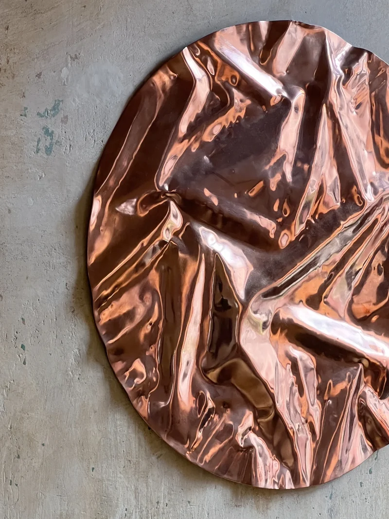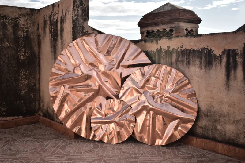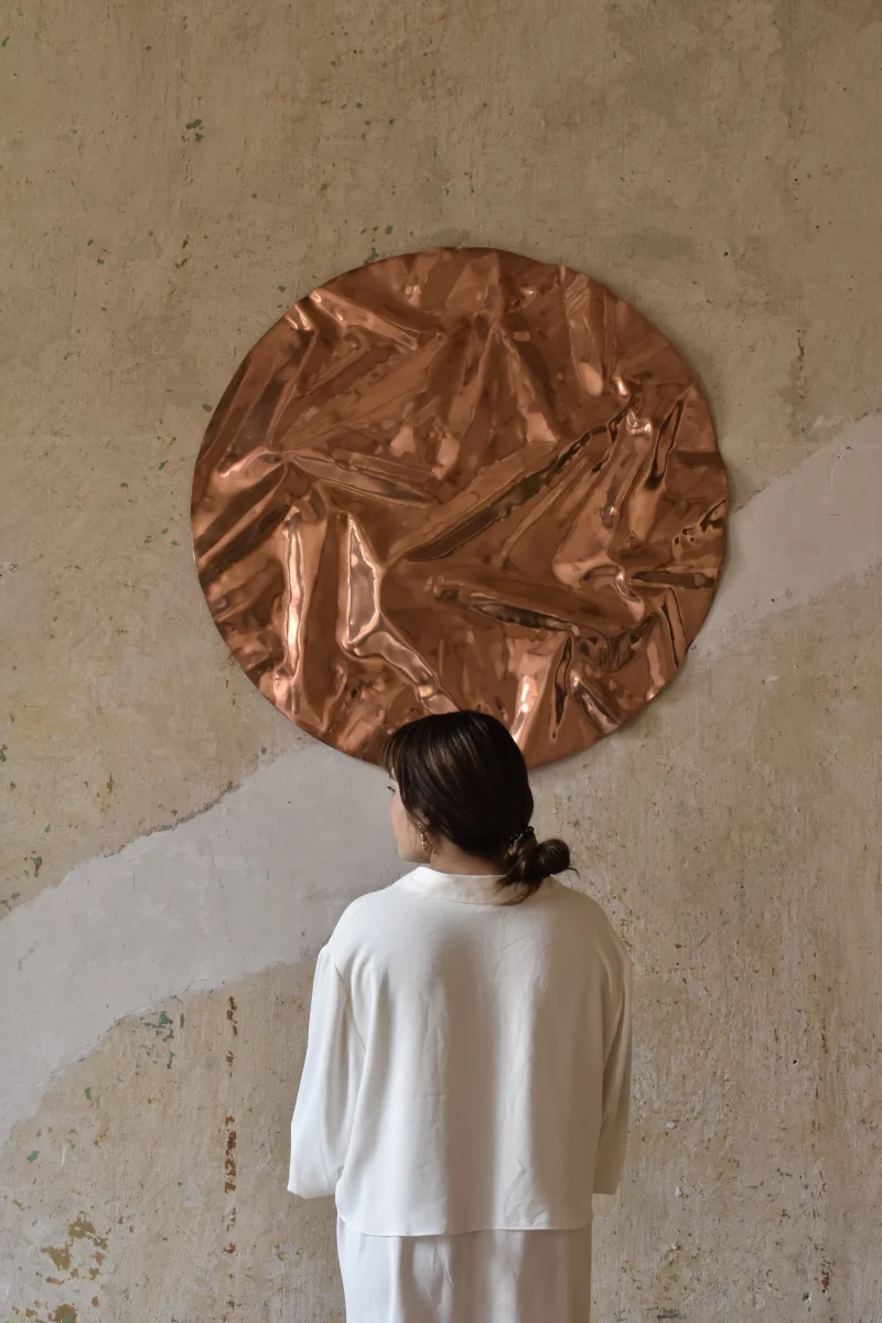 Mar de Cobre is a sculptural piece and is the result of the observation, admiration, and enjoyment of the sea. It serves as a tangible testimony of the social and cultural context. Made by master craftsmen from Santa Clara del Cobre, Michoacán, with casting techniques of scraps recovered from different workshops, this process allows us to almost completely reduce the waste and improve the residual impact of these metals. The swell in each piece is different and unique.