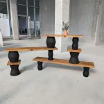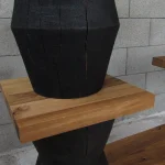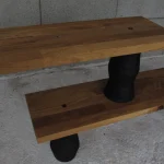 Mara, a modular shelving system crafted by French designer Guillaume Thireau, offers adaptability for any setting. Constructed entirely from oak, it features structural elements inspired by traditional carpentry techniques, where intertwining oak sections create a unified entity akin to the base of a roof. Infused with rustic design elements and a touch of Mid Century Modern style, Mara’s structural and sculptural components are meticulously crafted on a wood lathe. Their rich, dark hue is achieved through a chemical reaction with a rust-based solution, enhancing the oak’s natural tannins and adding depth to its surface.
