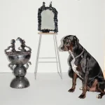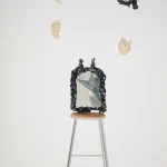 From the series HYPOTHETIC OBSIDIAN by lucile Gracile, inspired by the universality of funeral rites that show that permanent questioning on where the soul goes after life. Don’t we all know about this evident finality? If there would be a way to face it beforehand don’t we all be more in acceptance with our life purpose ? This mirror is a portal to self reflection on our humanity, and acceptance of the mystery of life after death.