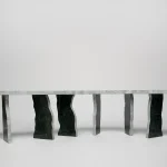 A system with fluid aesthetics and geometric rhythm. The irregular shapes enter into dialogue with the material, helping to discover the fascinating essence of marble in a play of light, shadow and texture. The term “system” indicates a series of elements, connected to each other, which interact and evolve as a single whole. Sinuous and irregular portions of marble are composed in the construction of ever-changing furnishing systems. Marble, as an inert material and a classic archetype of stillness, becomes in Marbelicious an expression of fluidity and movement. Soft and architectural geometries are composed in rhythmic and harmonious patterns. A single cut and decomposed slab takes on rounded and winding shapes, giving the single modules a unique and vibrant sign. The material is processed without the aid of industrial machines, therefore each module is reproducible but will never be the same. Each piece is made in Italy with care by master craftsmen.