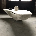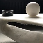 In ancient times, salt was rare and costly. Yet, since the industrial revolution, it has become so cheap and easily available that we no longer recognise its value. With “Marbled Salts”, Roxane Lahidji explores new possibilities, reinventing salt as a sustainable design material. She has made use of its unique physical properties as a self-binding composite to create a set of tables and stools. By mixing it with tree resin, she gives it shape and strength. Coal powder and the natural colour variations in salt mimic the aesthetics of expensive natural stone such as marble. Herein, she draws a contradictory parallel between the flexible versatility of salt and the material language of heavy and solid rock.