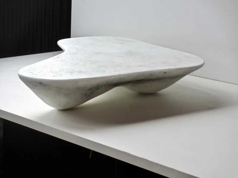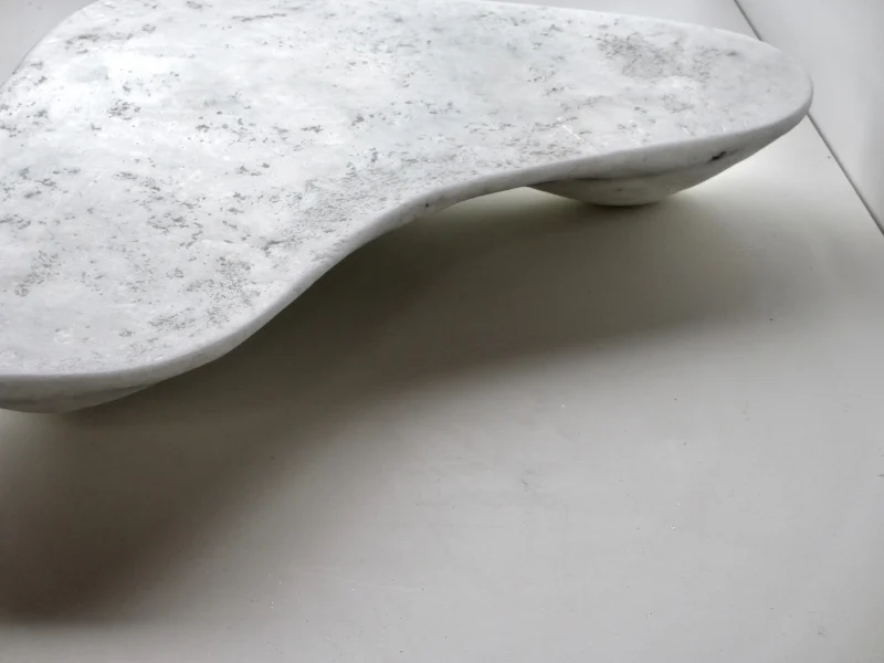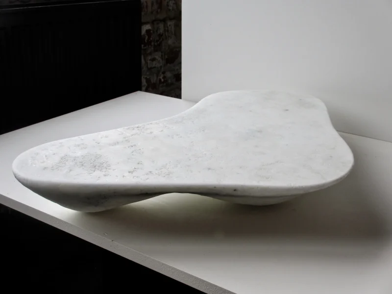 In ancient times, salt was rare and costly. Yet, since the industrial revolution, it has become so cheap and easily available that we no longer recognise its value. With “Marbled Salts”, Roxane Lahidji explores new possibilities, reinventing salt as a sustainable design material. She has made use of its unique physical properties as a self-binding composite to create a set of tables and stools. By mixing it with tree resin, she gives it shape and strength. Coal powder and the natural colour variations in salt mimic the aesthetics of expensive natural stone such as marble. Herein, she draws a contradictory parallel between the flexible versatility of salt and the material language of heavy and solid rock.