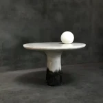 In ancient times, salt was rare and costly. Yet, since the industrial revolution, it has become so cheap and easily available that we no longer recognise its value. With “Marbled Salts”, Roxane Lahidji explores new possibilities, reinventing salt as a sustainable design material. She has made use of its unique physical properties as a self-binding composite to create a set of tables and stools. By mixing it with tree resin, she gives it shape and strength. Coal powder and the natural colour variations in salt mimic the aesthetics of expensive natural stone such as marble. Herein, she draws a contradictory parallel between the flexible versatility of salt and the material language of heavy and solid rock