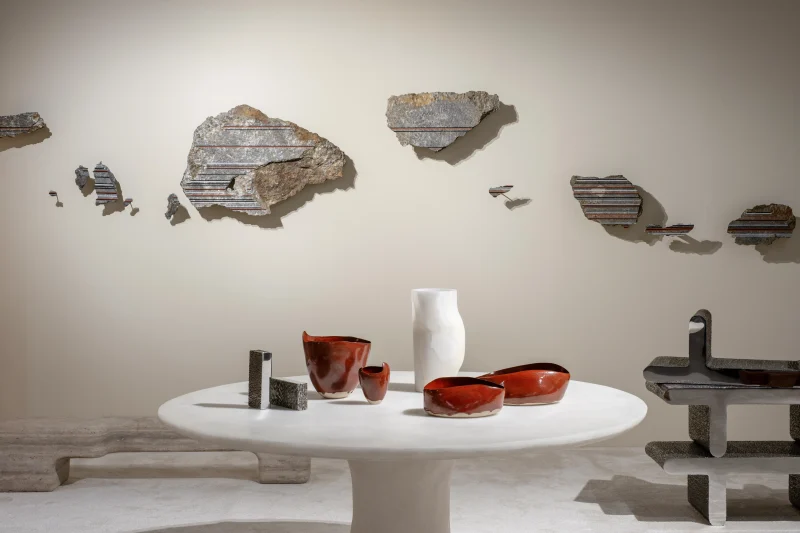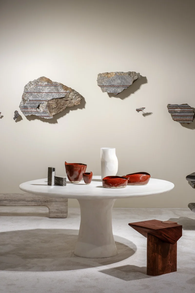 In ancient times, salt was rare and costly. Yet, since the industrial revolution, it has become so cheap and easily available that we no longer recognise its value. With “Marbled Salts”, Roxane Lahidji explores new possibilities, reinventing salt as a sustainable design material. She has made use of its unique physical properties as a self-binding composite to create a set of tables and stools. By mixing it with tree resin, she gives it shape and strength. Coal powder and the natural colour variations in salt mimic the aesthetics of expensive natural stone such as marble. Herein, she draws a contradictory parallel between the flexible versatility of salt and the material language of heavy and solid rock