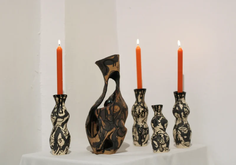 Each candleholder is meticulously crafted and uniquely hand-painted using a technique the designer likes to call “the dance with the oxide,” where the studio intuitively draws routes that later unveil stories hidden in-between those organic and messy patterns made. The combination of oxides, engobes, and glazes creates a mesmerizing marbled effect, evoking the tranquil motion of water and light. Perfect for adding a touch of elegance and wonder to any space, the Marbling Dream Candleholder is not just a decorative piece, but a celebration of the serene and captivating moments found in nature that connect us to the core of our existence.