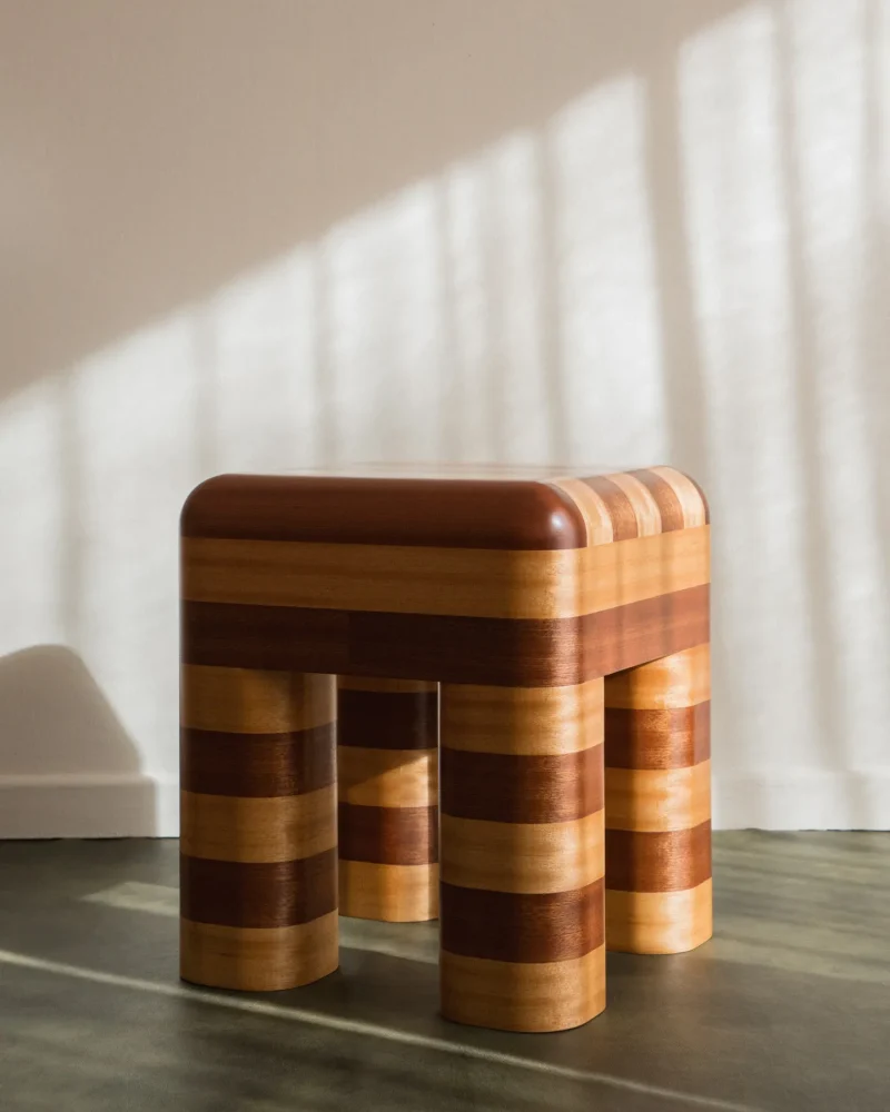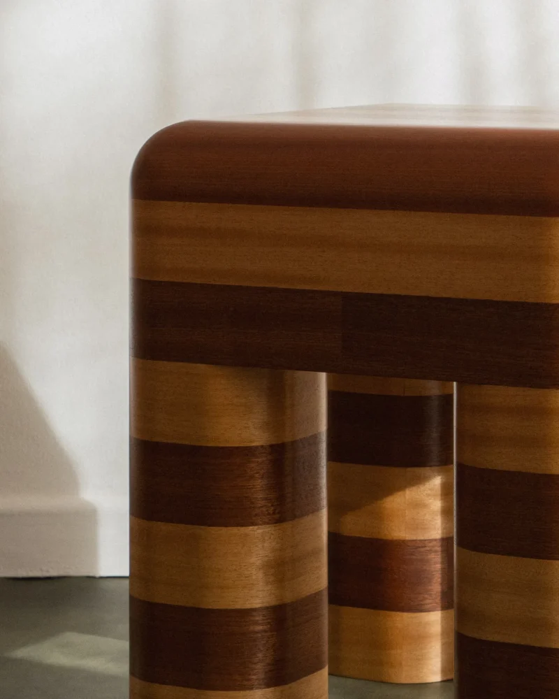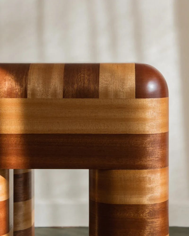 Each Marcello is entirely one-of-a-kind, featuring a two-toned wooden pattern that highlights the natural interplay of colors and textures. Crafted from Mahogany Wood Veneer and Tola Wood Leaf, its pigment-free bionatural varnish enhances the material’s innate beauty with a subtle 20% gloss finish.