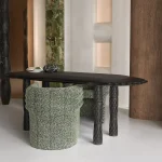 The Mascot Dining Table showcases expressive sculptural forms in both its legs and tabletop, adding texture and uniqueness to the design. While it may not be suited for purely ethnic interiors, it serves as a striking addition to eclectic spaces, seamlessly blending diverse styles.