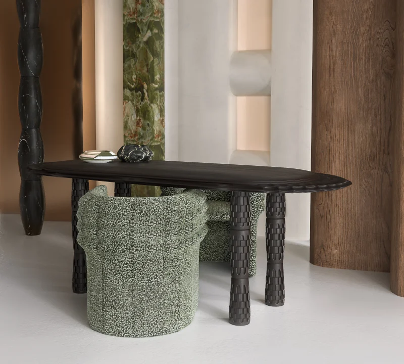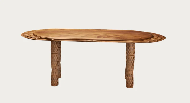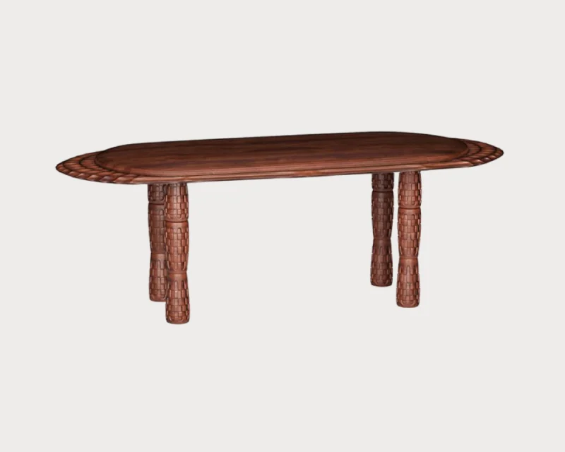 The Mascot Dining Table showcases expressive sculptural forms in both its legs and tabletop, adding texture and uniqueness to the design. While it may not be suited for purely ethnic interiors, it serves as a striking addition to eclectic spaces, seamlessly blending diverse styles.