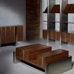 MAST is a bold and modern collection, defined by strong, voluminous shapes, and soft round lines. The pieces’ design uses contrast thoughtfully, gently highlighting colors and materials – from rich, warm walnut hues, to the stern and smooth clarity of stainless steel.