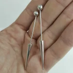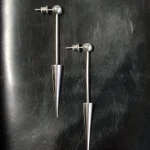 Sterling Silver Earrings, part of the “Matador” series by Bulgarian-based designer, Georgiev Zabeta. These earrings, with dangling geometric yet organic forms, embody a harmonious blend of simplicity and dynamism.