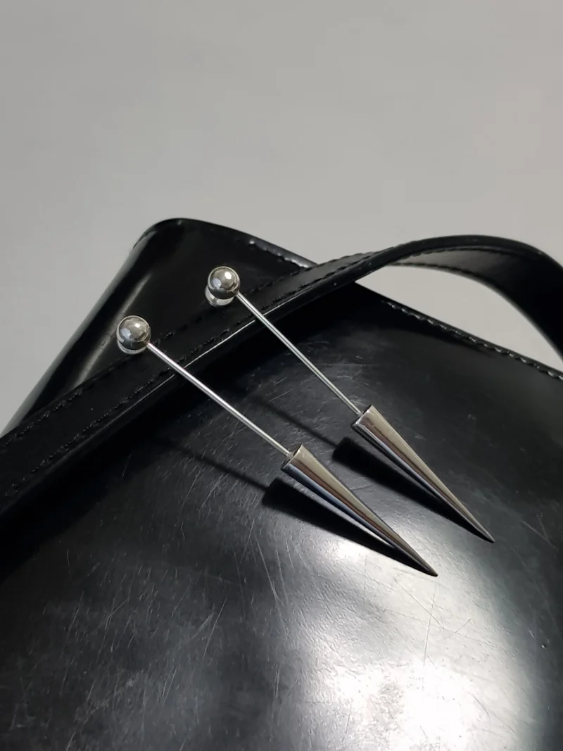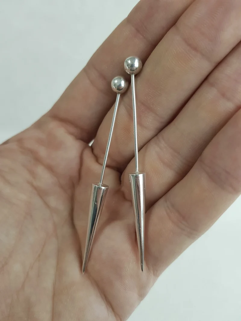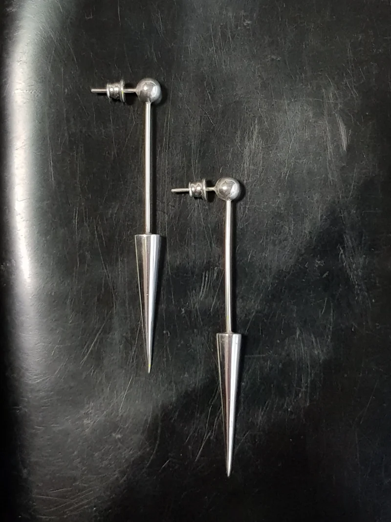 Sterling Silver Earrings, part of the “Matador” series by Bulgarian-based designer, Georgiev Zabeta. These earrings, with dangling geometric yet organic forms, embody a harmonious blend of simplicity and dynamism.