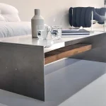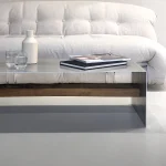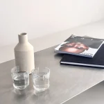 Each table is crafted in Germany from solid aluminum panels — sanded to a soft, even sheen that reduces fingerprints, stains, and scratches. The result is a timeless piece that balances industrial precision with artisanal sensitivity, designed to age beautifully and develop a subtle patina over time.