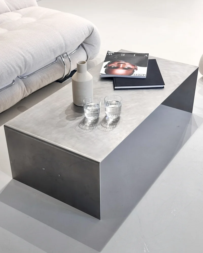 Matte Aluminum Designer Coffee Table – Hand-Sanded & Waxed Finish | Collectible Design Made in Germany