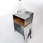 Night Stand – Side Table made from Hand Sanded Aluminum and Natural Oak Wood (Oil Finishing).