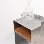 Each table is crafted in Germany from solid 4mm aluminum panels — sanded to a soft, even sheen that reduces fingerprints, stains, and scratches. The result is a timeless piece that balances industrial precision with artisanal sensitivity, designed to age beautifully and develop a subtle patina over time.
