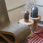 At the core of this contemporary collection by Boo Design Studio lies a tribute to the geometric splendor of jewelry traditionally worn in the Arabic peninsula —now re-envisioned through the lens of modern minimalism. The medley of armchairs and lighting is a celebration of this rich artistic heritage, each thoughtfully crafted from metal to blend historical reverence with informed functionality. Every piece serves as a reminder of the past, reflecting the intricate patterns and enduring allure of ancient craftsmanship.