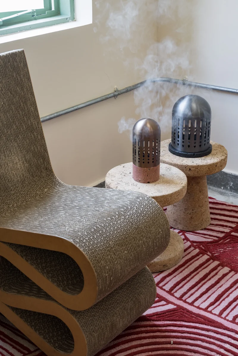 At the core of this contemporary collection by Boo Design Studio lies a tribute to the geometric splendor of jewelry traditionally worn in the Arabic peninsula —now re-envisioned through the lens of modern minimalism. The medley of armchairs and lighting is a celebration of this rich artistic heritage, each thoughtfully crafted from metal to blend historical reverence with informed functionality. Every piece serves as a reminder of the past, reflecting the intricate patterns and enduring allure of ancient craftsmanship.