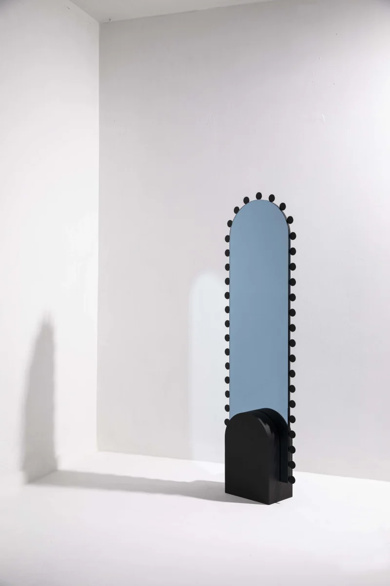 At the core of this contemporary collection by Boo Design Studio lies a tribute to the geometric splendour of jewellery traditionally worn in Arab world —now reenvisioned through the lens of modern minimalism. The studio’s medley of mirrors, lighting and tables is a celebration of this rich artistic heritage, each meticulously crafted from metal to blend historical reverence with informed functionality. Every piece serves as a reminder of the past, reflecting the intricate patterns and enduring allure of ancient craftsmanship.