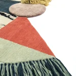 Among Mareike’s diverse creations, the ‘medley’ wallhanging stands out as an exceptional expression of this design philosophy. Infused with eclectic influences, the ‘medley’ is a colorful, geometric marvel, featuring an interesting fringed texture. Its asymmetrical design adds a touch of uniqueness, creating a harmonious blend of elements that captivate the eye and elevate the space with unparalleled craftsmanship.