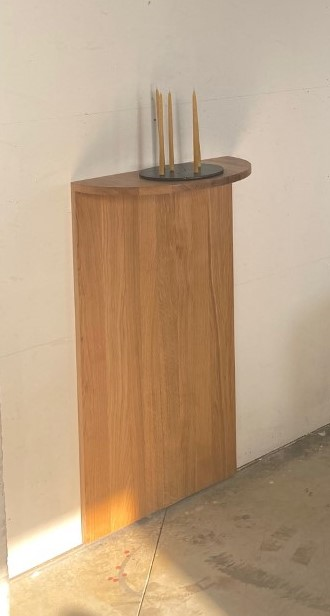 Megaron is a sculptural shelf inspired by votive architecture. It is completly handmade in solid wood.