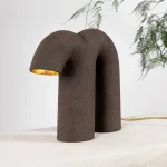 Melo M is a black ceramic lamp by Romanian-British designer, Catalin Filip inspired by the natural response of wet clay under the force of gravity. It is handmade and the design is part of a limited collection of sculptural lighting fittings. It can be used in different ways, for reading/working or as a ambient light in a space.