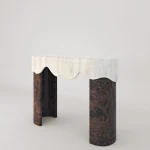 Blurring the lines between solidity and fluidity, the Melt collection leans on natural stones and wood to form a three-piece collection of tables while each piece plays with complementing and contrasting these materials in the name of achieving maximum aesthetic pleasure.
