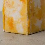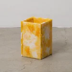 This project is a new way to approach the surface texture of plastic from sustainability issues. I did various chemical experiments with plastic flakes and solvents. I found out about the problem when I visited the prototype factory. I saw so many plastic flakes thrown out of the garbage, not recycled. That is why I focus on this material. The result of the experiment is very interesting as a designer. It looks like melting toppings on pizza in the oven. To have a certain shape, I intentionally placed plastic flakes in the form of a square. I can see the surfaces of melting plastic flakes were twisted and intumescent. After evaporation, I attached two melted plates to express different volumes and textures on both sides. I used only 100% plastic flakes without any other material to harden for the “Melting series.” Each color pigment emphasized the attractive volume of the surface. This cannot be seen on the surface of existing plastic products and pretty much matches our daily lives.