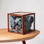 It was this emotional conundrum that birthed the “Memento” table. Andreas envisioned a sanctuary for such heirlooms, where they could be both safeguarded and showcased. With its certified Freijo and Imbuia solid wood construction, combined with a wood-framed glass box, this table invites owners to place their invaluable possessions within, keeping memories alive and ever-present.
